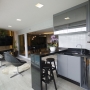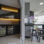 sala de jantar e cozinha integrados com ar condicionado, cervejeira e adega.
